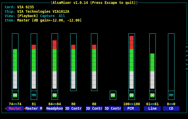ALSAMixer est un mixeur Alsa dans un terminal.