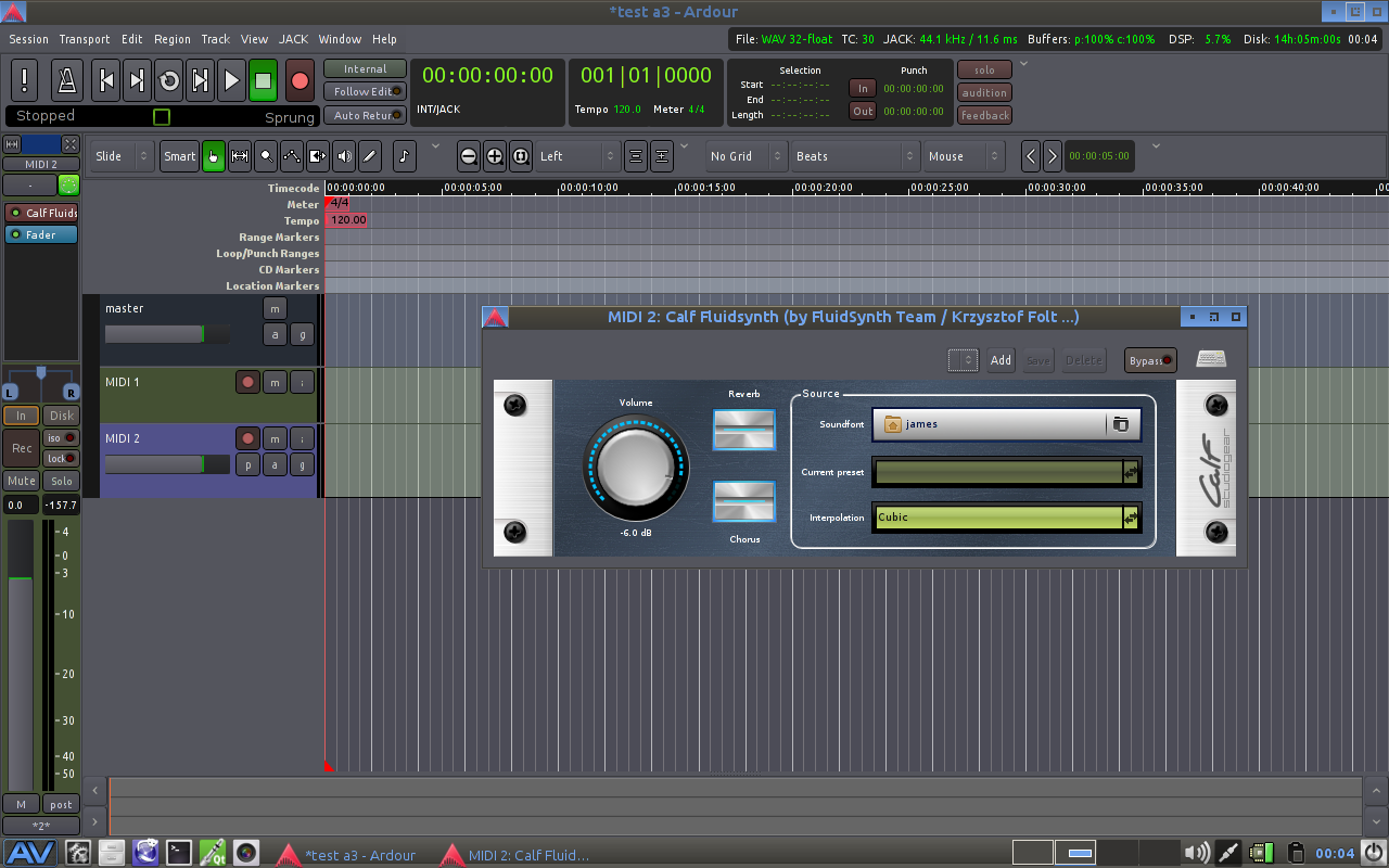 Ardour 3 est plutot bien fourni en instruments virtuels et est dotté du lecteur de