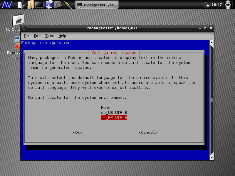 tzdata, c'est a dire de lui indiquer dans quel fuseau horaire vous vivez, ce afin de configurer l'horloge. Pour la plupart d'entre vous ce sera