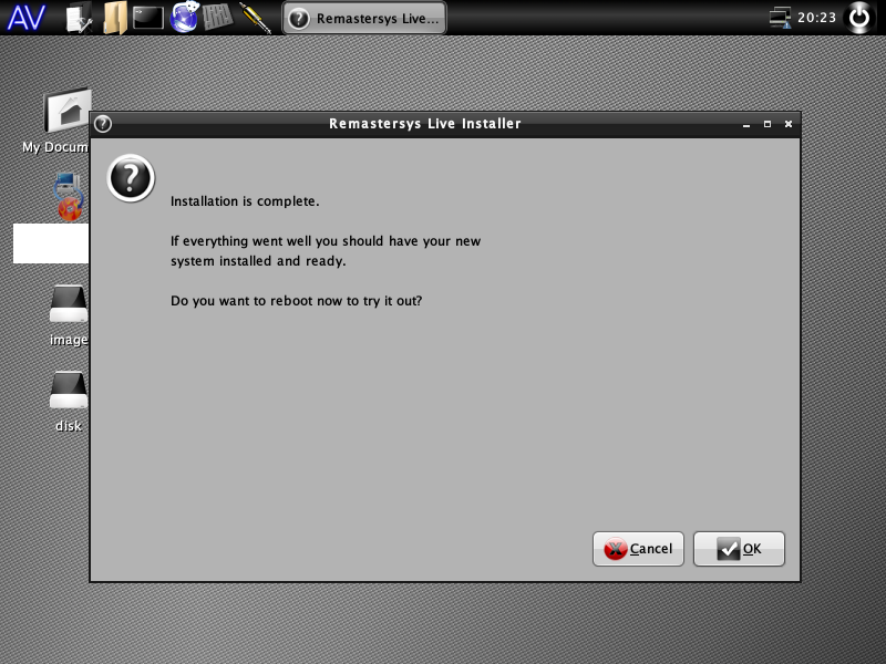Remastersys Control Panel (dans la barre de taches juste a droite du menu AV) et dans System Management je clique sur