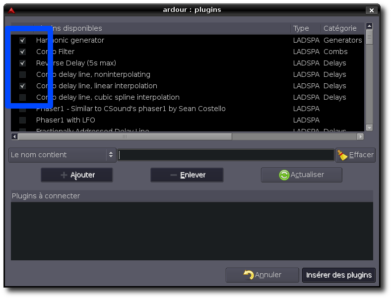 Heureusement, Ardour intègre un système de greffons favoris.