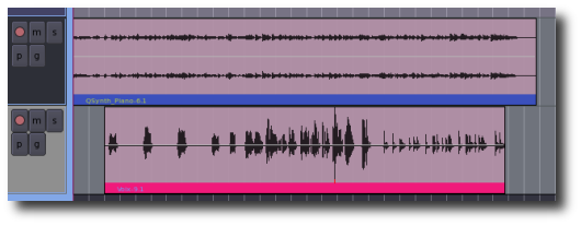 On change ensuite pour le curseur « pour sélectionner et déplacer des objets » afin d'avancer les deux pistes. La même opération est réalisée en fin de morceau (j'ai coupé plus rapidement la piste voix pour diminuer le souffle).