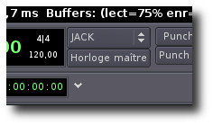 - Vous pouvez également constater dans QJackCtl que vous avez le contrôle d'Ardour (qui a été déclaré Maître) par les boutons de lecture, pause, ... de QJackCtl,