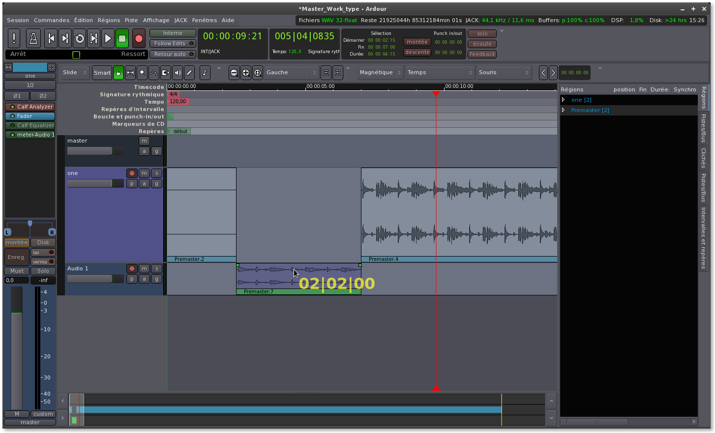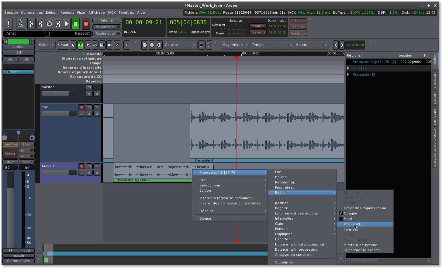 contracter et aussi en moduler la hauteur (tonalité) de sorte à pouvoir se servir de cette portion comme une création à part entière. Ainsi on verra à l'usage combien les outils d'édition de Ardour sont puissants.
