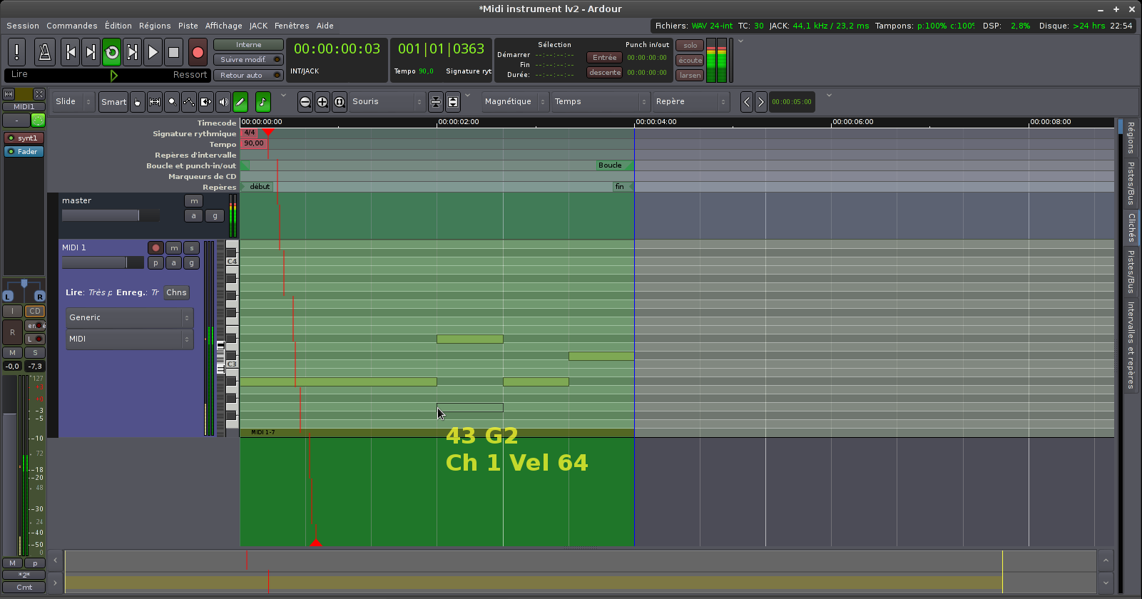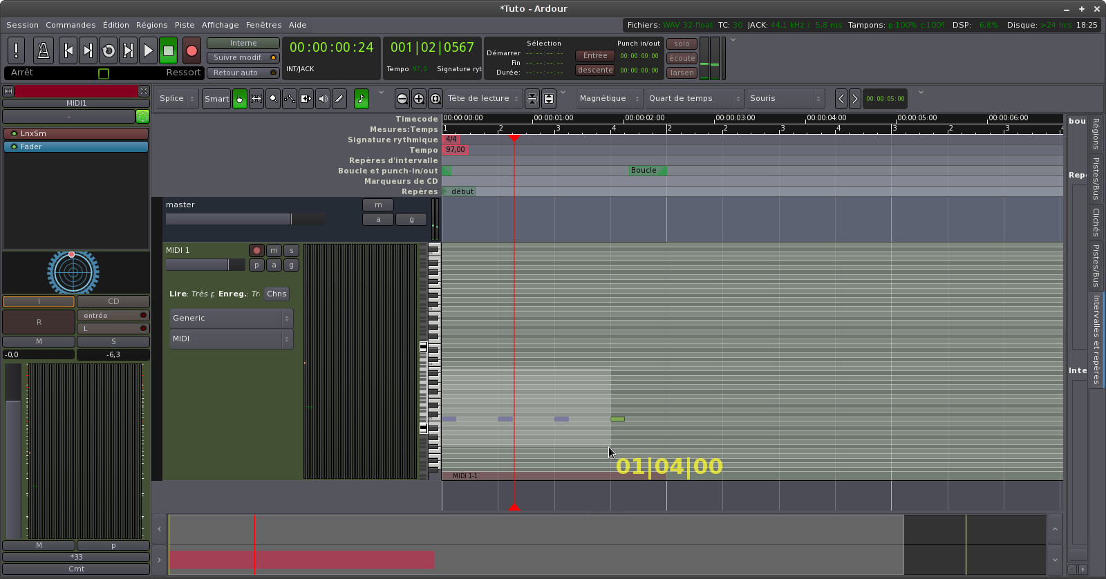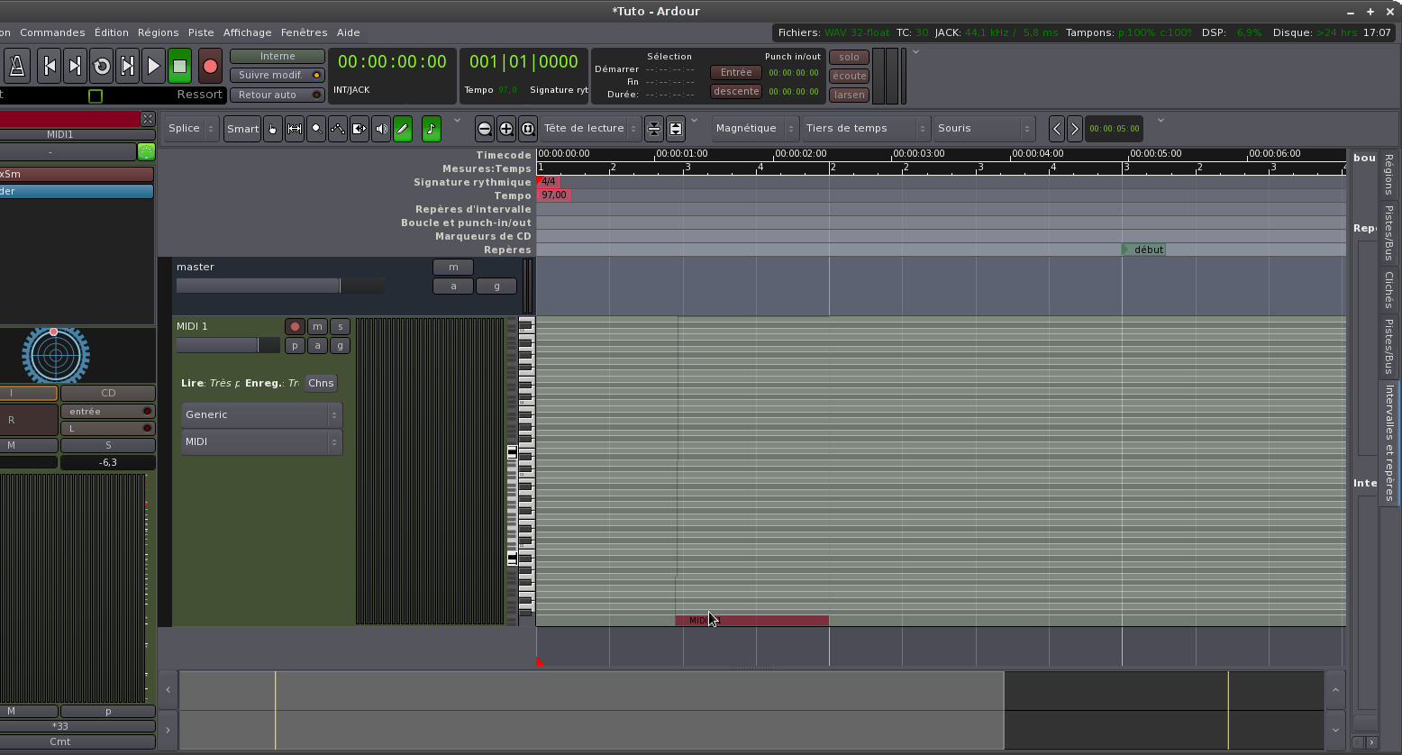 Toutefois l'édition midi peut présenter certains problèmes instabilité récurrente et provoquer des crashs de Ardour.