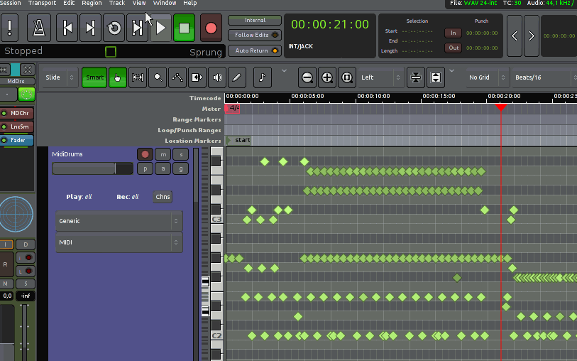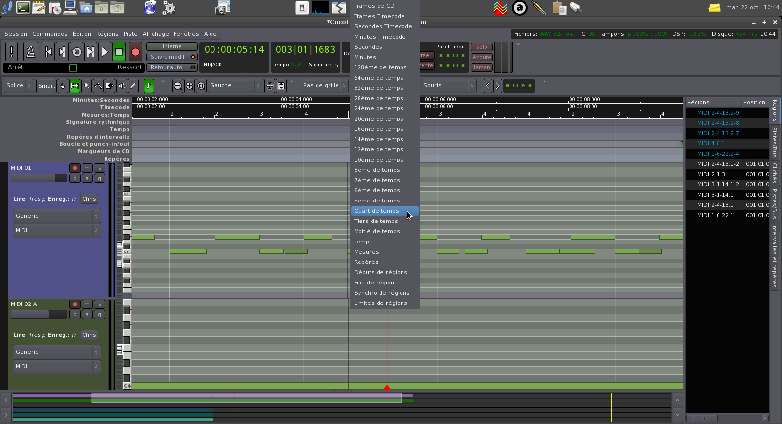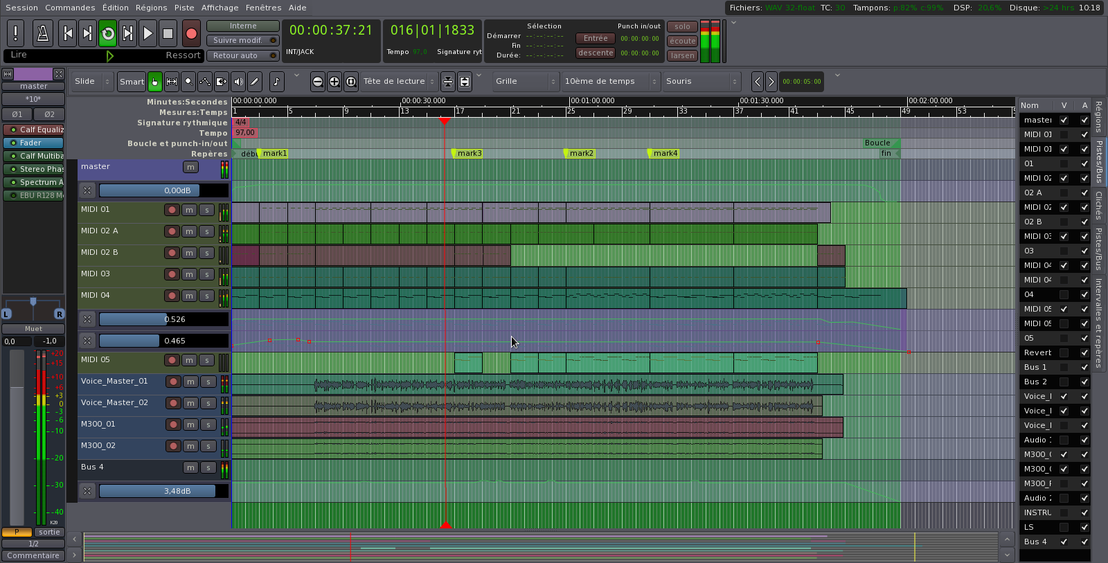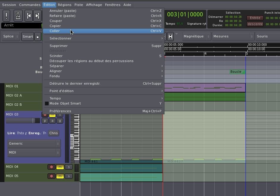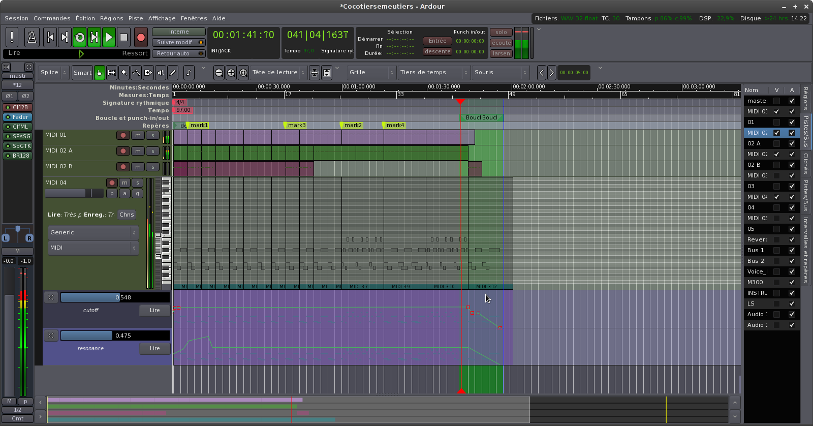 Toutefois l'édition midi peut présenter certains problèmes instabilité récurrente et provoquer des crashs de Ardour.