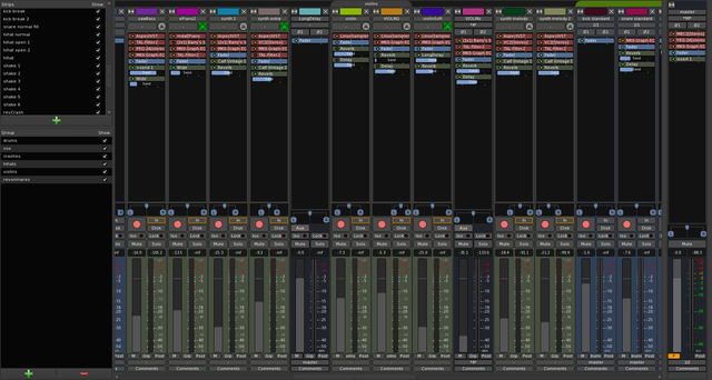 - mixage sous Ardour à l'aide des greffons LADSPA ou LV2 ou autres,