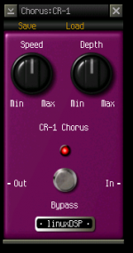 CR-1 Chorus est un effet chorus guitare classique, variable d'un léger «miroitement» pour un effet de style vibrato choeur beaucoup plus prononcée. JACK compatibilité et de contrôle MIDI lui permettre d'être utilisé en direct via le serveur JACK audio à faible latence, ou il peut être utilisé comme un plugin LV2 dans une station de travail audio numérique pour ajouter des effets à des pistes audio existantes.