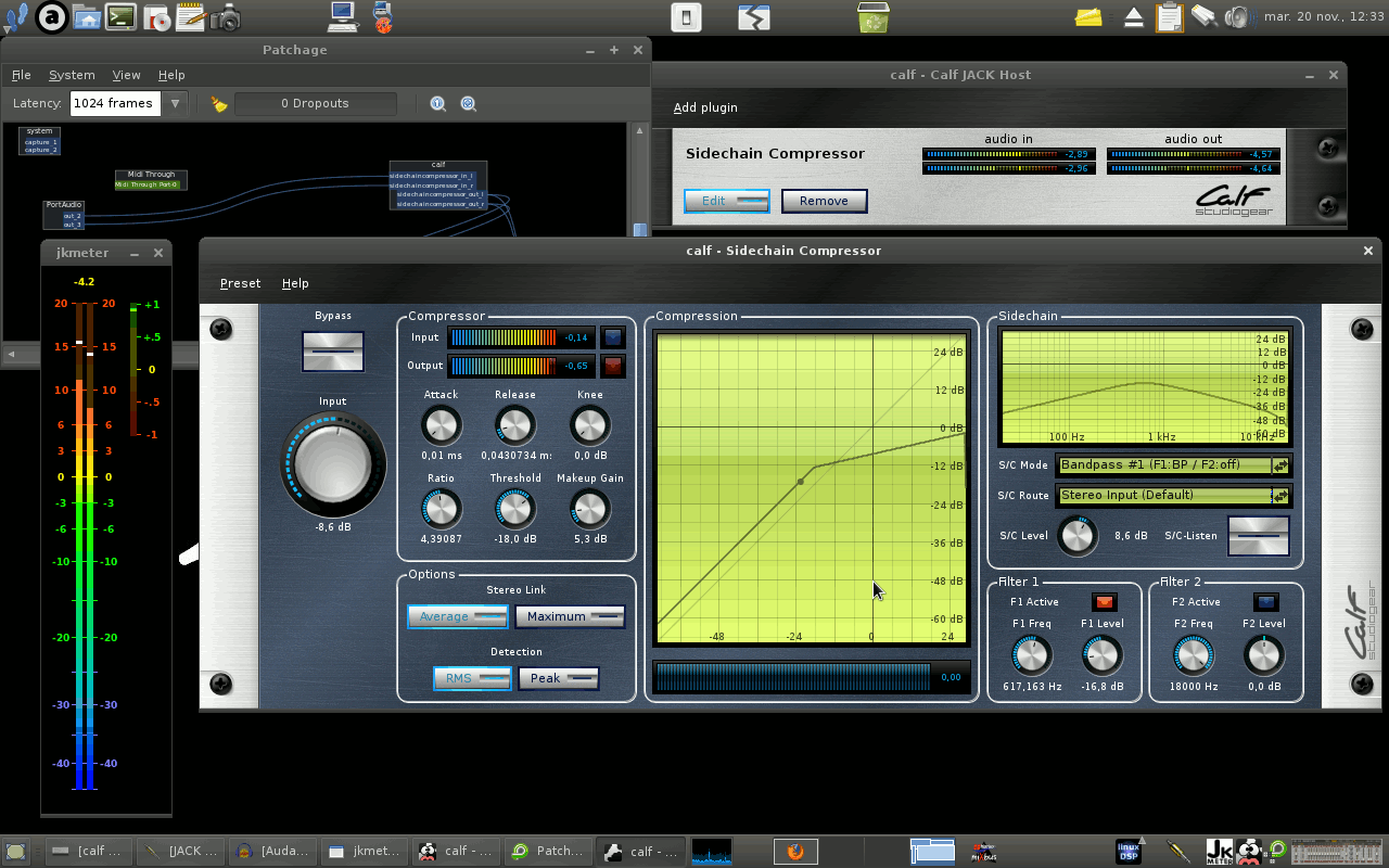 Calf-Sidechain Compressor est un compresseur en série pointu avec filtres passe-haut et passe-bas réglables faisant partie de la suite Calf Studio Gear.