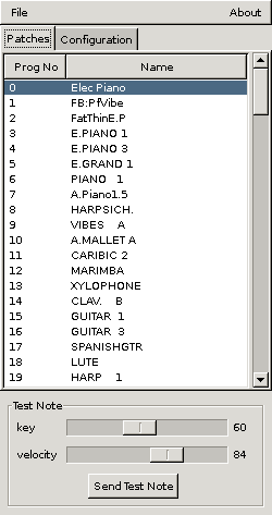 - Dans l'hôte interne jack-dssi-host. C'est une simple commande qui permet de connecter un greffon DSSI au serveur Jack. On peut donc faire quelques petits tests avec. Ex: jack-dssi-host hexter.so (ne pas oublier le .so) Voila, l'interface graphique devrait apparaître, par défaut le greffon semble se connecter en mono. Avec QJackCtl connectez-le aux 2 sorties de votre carte son, et reliez le port midi à votre clavier. Ce petit programme ne permet pas de sauver les paramètres.