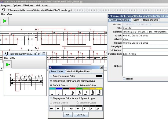 DGuitar est un lecteur de tablatures compatible GuitarPro (gp4, gp3 et gpt).