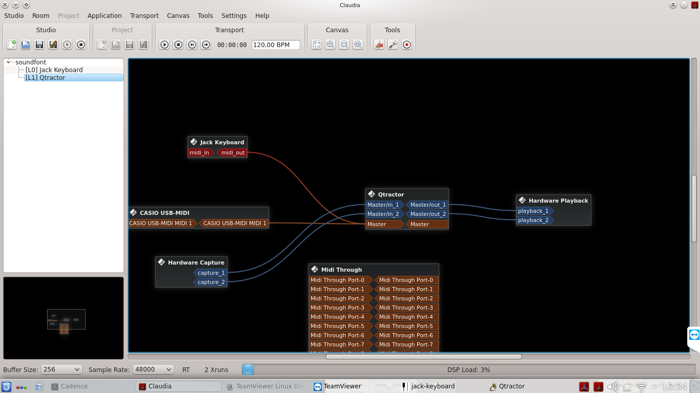 - le jack keyboard (pas obligé de le lancer, mais si vous le faites : c’est toujours dans Claudia> application>add new>jack keyboard dans la liste