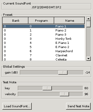 Fluidsynth-DSSI est un lecteur d'échantillons sf2 au format DSSI et basé sur FluidSynth.
