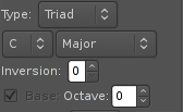 - Le Type (custom, triad et guitar). Avec custom vous pouvez créer votre propre accords, une triad est un accord à trois son, et les accords de type guitare sont des drop 2 (do mi sol devient do sol mi).
