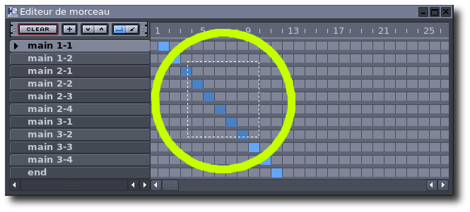 Le mode sélection permet de saisir plusieurs motifs et de les déplacer ailleurs dans la séquence en une seule opération.