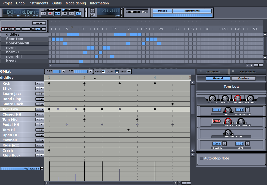 Hydrogen est une boîte à rythmes, et un séquenceur pas-à-pas audio et MIDI.