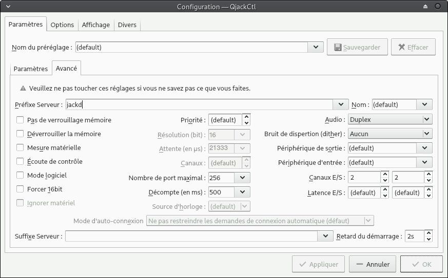 Tout devrait être bon ! Validez les réglages avec le bouton «OK», puis lancez Jack avec le bouton «Démarrer».