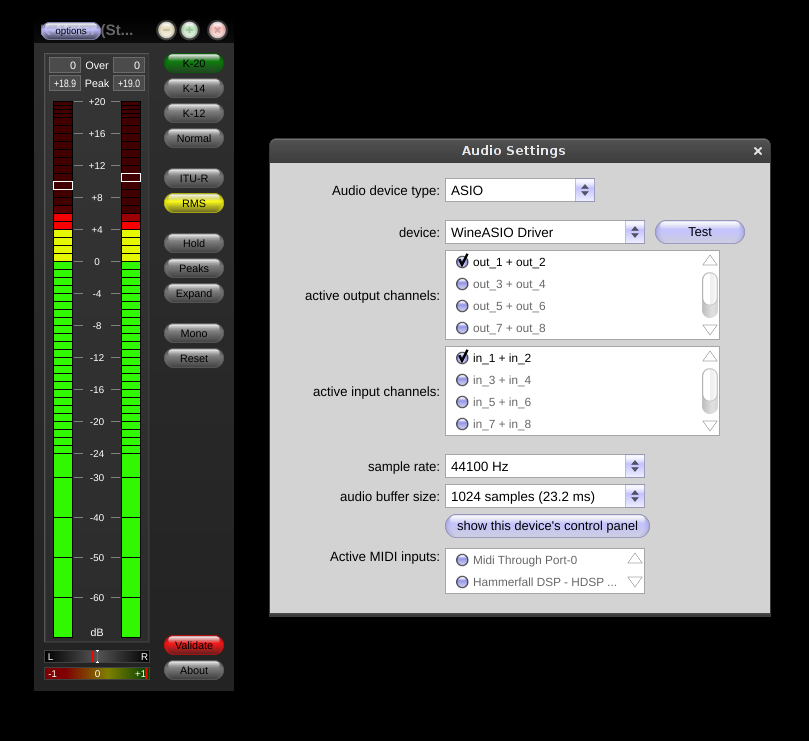 Astuce Tango Debian : la version du K-meter (autonome linux) ne fonctionne pas sur tango debian que ce soit en 32 ou 64 bits, à cause d'une problème de bibliothèques. Après un essai, il se trouve que la version autonome de windows en 32bits fonctionne très bien (oubliez la version en 64 bits avec wine). N'oubliez pas d'inscrire au registre wineasio :