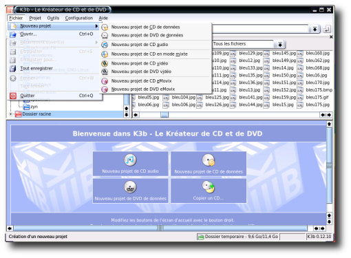 - l'intégration avec l'environnement KDE : on peut graver des fichiers depuis Konqueror ou une liste de lecture depuis Amarok