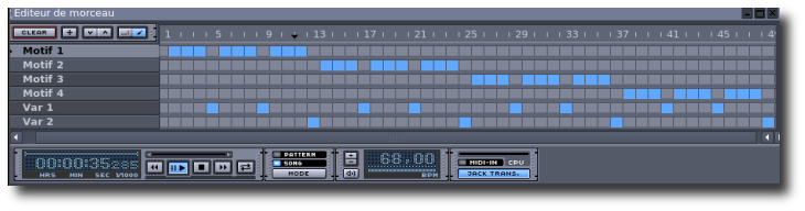 Tous les motifs (pattern) étant réalisés, nous allons les assembler pour créer un morceau➡️ Une grille (thème) de blues représente 12 mesures (donc 12 motifs)
