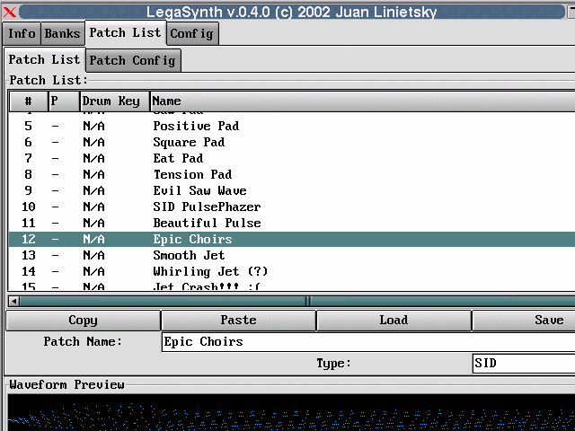 Site web officiel : http://freshmeat.net/projects/legasynth/.Version actuelle : 0.4.1 du 2003 04 30.