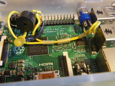 Comme ce temps peut paraître un peu long à l'utilisateur, qui n'a d'autre possibilité que de taper sur le clavier maître pour savoir quand le système est enfin opérationnel, on a installé un buzzer sur le GPIO (broche GPIO-22 et GND). Et ajouté l'activation du buzzer dans le script secondaire à la suite du