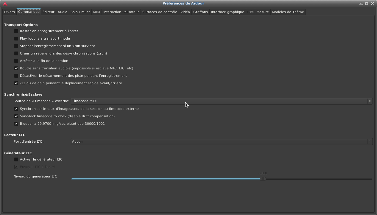 Voir pour inclure le LTC et SMPTE
