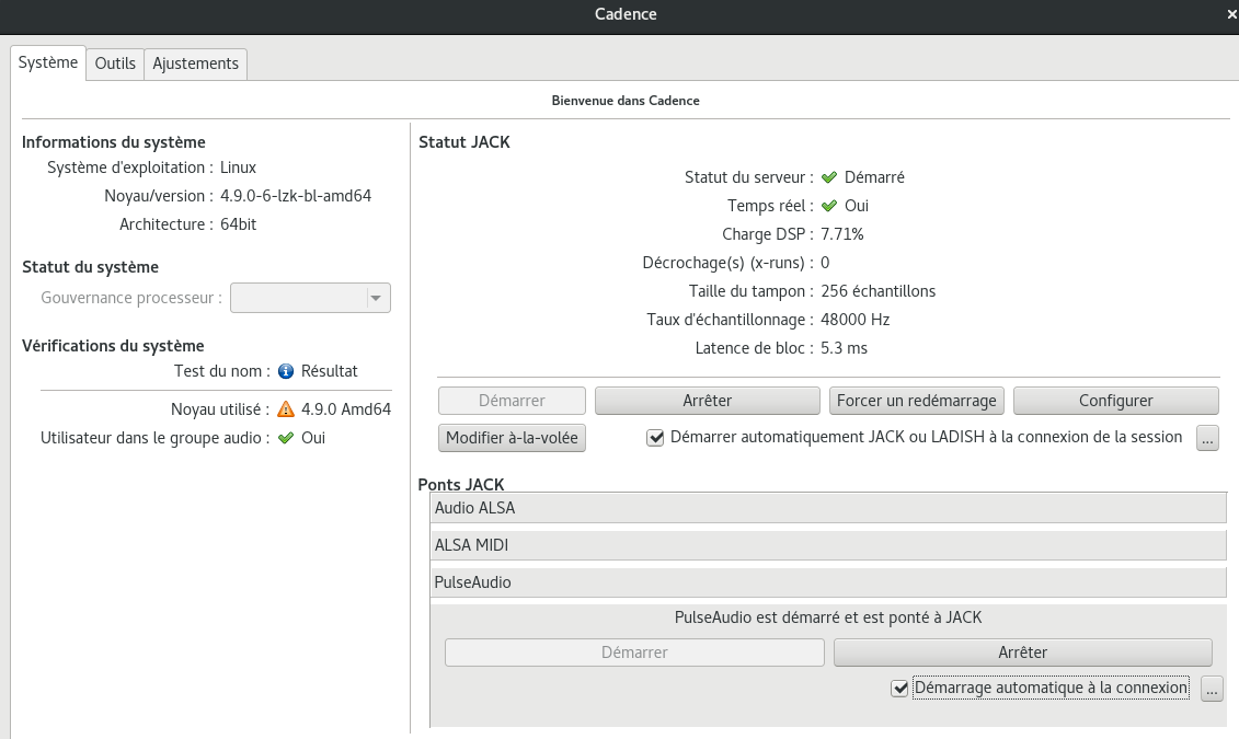 Mon niveau avec Cadence, JACK étant très très faible ... il y a des erreurs .. mais j'affinerai au fur et à mesure cette page.