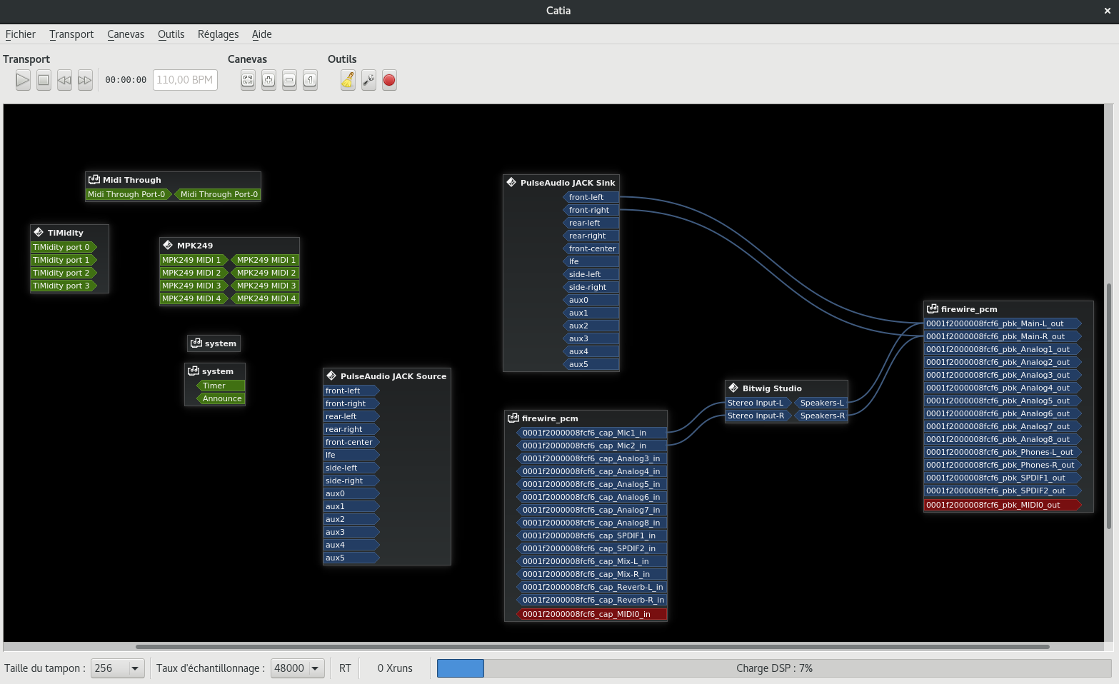 Voici mes réglages JACK et Catia :