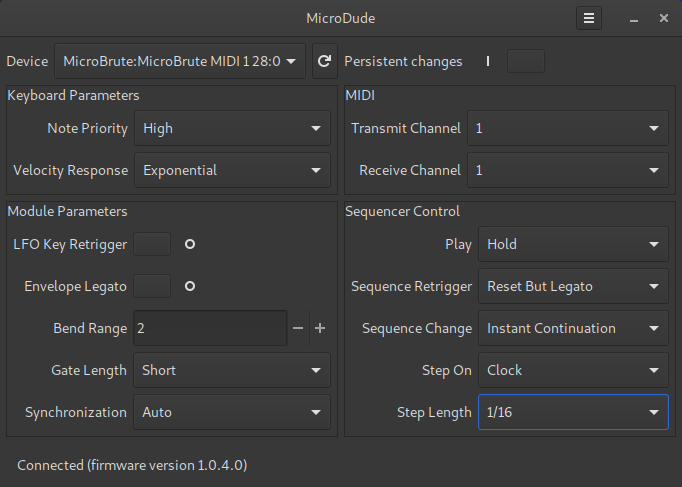 MicroDude est un éditeur de paramètres pour le synthétiseur Arturia Microbrute.