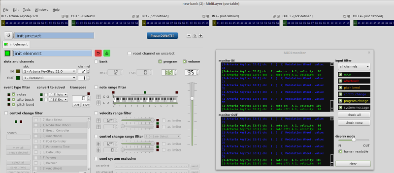 - Utilitaire de surveillance MIDI in et out
