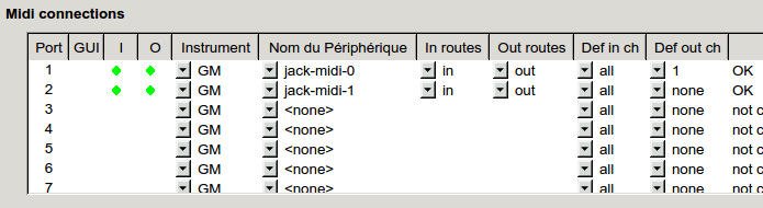 Il est possible d'associer une entre-sortie JACK MIDI différente à chaque port :