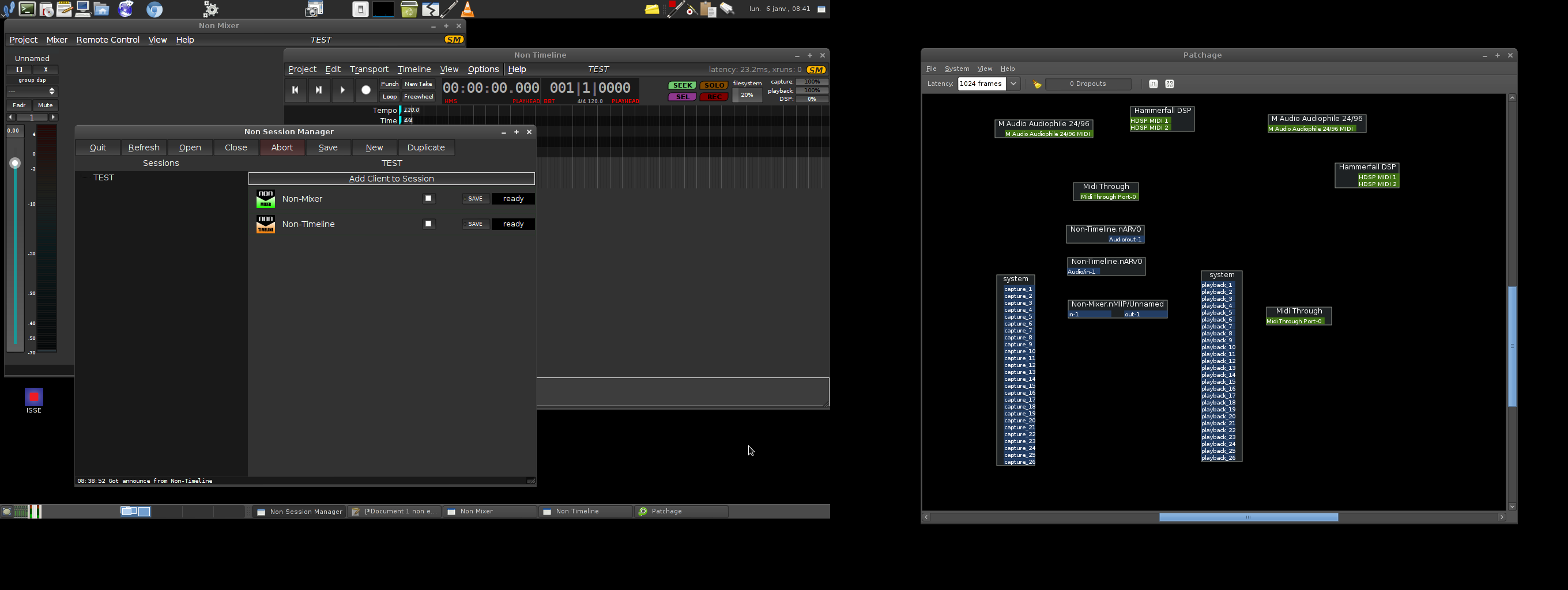 L'application JACKPatch, livrée avec, permet de restaurer les connexions JACK si elle est intégrée dans la session.