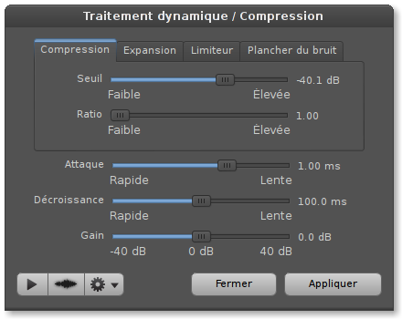 La compression est assez bien pensée dans le même panneau on accède à 4 types de compresseurs.