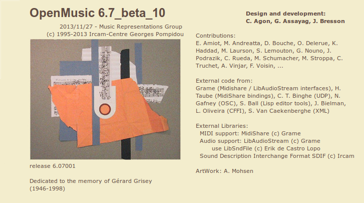 Site web officiel : http://repmus.ircam.fr/openmusic/home/.Version actuelle : 6.14.2 du 2019 02 13.