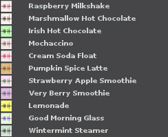 Voici les sélections du menu de clic droit concernant les couleurs de OOM et leurs noms. Nous les avons classées par thème dans des sous menus, nous espérons avoir mis ceci au point avec des noms faciles à retenir, que les utilisateurs trouverons vite comme étant leurs favoris.