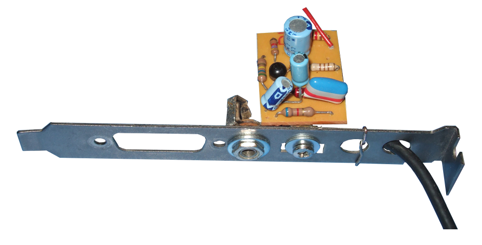 Pour diminuer ce souffle, je devais donc augmenter le son du microphone, avant l'entrée, par un préamplificateur matériel que je voulais insérer dans l'ordinateur et ainsi de profiter de son alimentation 12 ou 5 V, et d'avoir une plaque support la plus réduite possible.