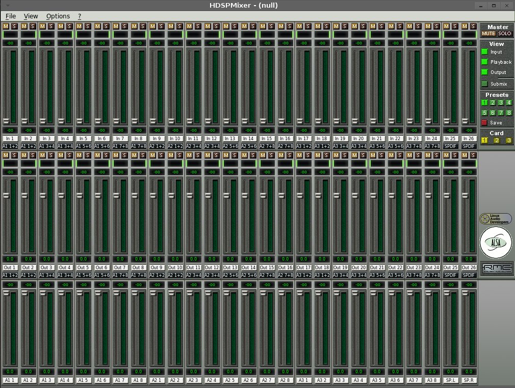 Par contre, attention, rien de marchera, vous n'aurez pas de son si votre fenêtre rme n'a pas été ouverte ! Chez moi, c'est comme ca... Pour « activer » la carte, il faut absolument ouvrir hdspmixer pour que les sons puissent entrer et sortir...