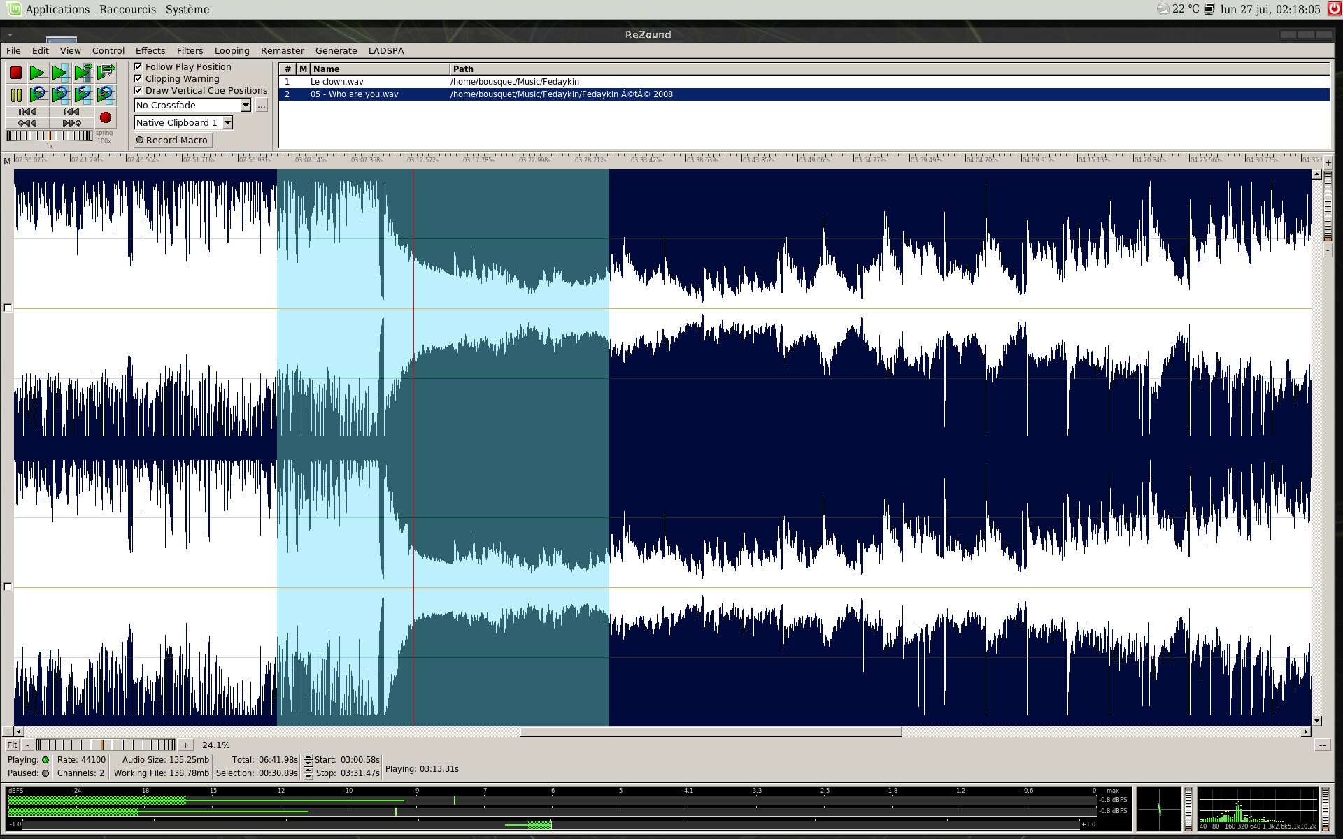 Je précise que je fais rarement d'enregistrement comme cela... Ceci dit, avec les logiciels les plus réputés dans le monde de la MAO sous GNU/Linux, je n'ai jamais eu aucun souci... que ce soit hydrogen, Zynaddsubfx... Pour ce qui est de Rosegarden, pour l'avoir utilisé plusieurs fois, cela fonctionne très bien...
