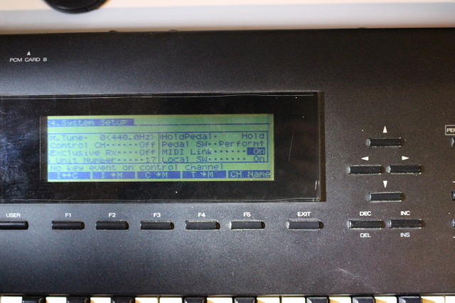 option 'midi link' 'on'. on peut changer la valeur avec les touches DEC ou INC (décrémenter ou incrémenter)