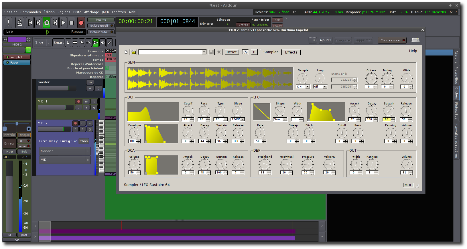 Samplv1 en greffon dans Ardour 3