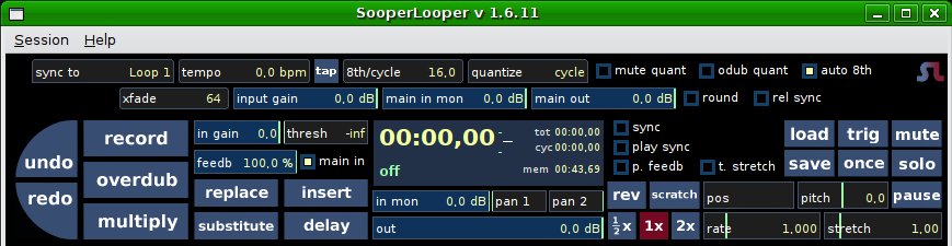- sync to : est la source de synchronisation des boucles. Cela peut être une boucle (par exemple "Loop1", "Loop2",...), un tempo interne ("Intern", paramétrable dans la case tempo), un métronome externe ("MidiClock"), de se synchroniser au tempo de jack ("Jack/Host"), ou bien sûr de ne pas du tout se synchroniser ("None").