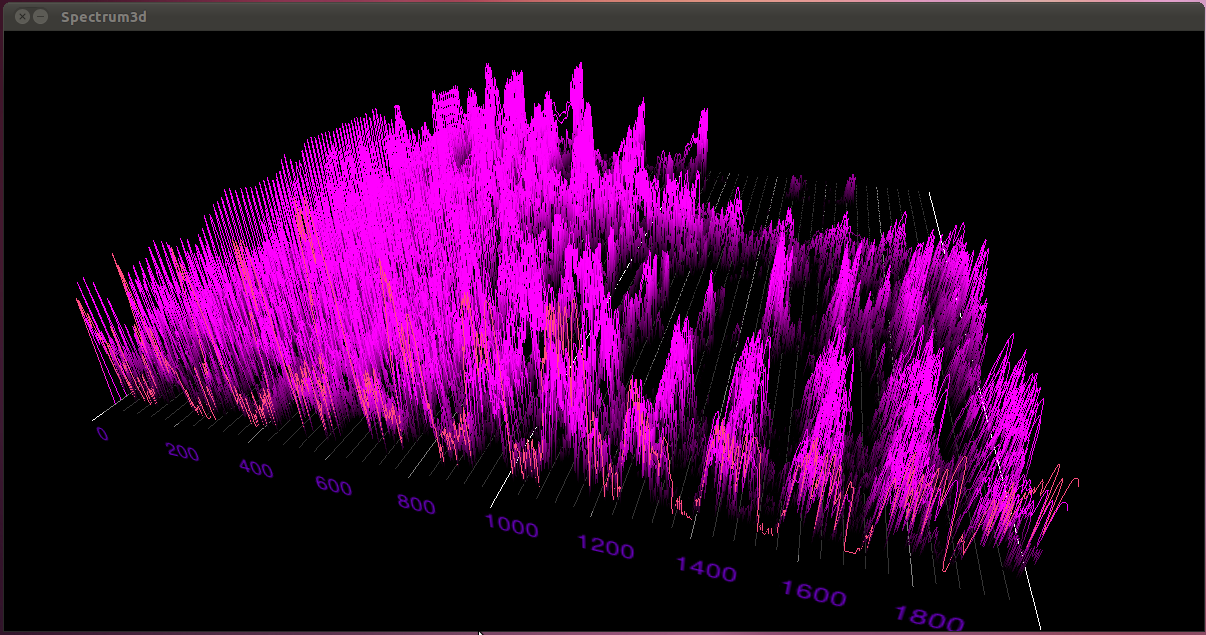 Spectrum 3D affiche un spectrogramme en 3 Dimensions. La source audio peut être un microphone, un fichier audio, ou bien jack. Il peut être lancé en temps réel sans Jack (voir les remarques importantes à ce propos). il est également tactile multitouch en option. Il utilise les bibliothèques libres Gstreamer, SDL (ou GtkGlExt), OpenGl, Gtk+ et uTouch-Geis et est sous licence GNU GPL.
