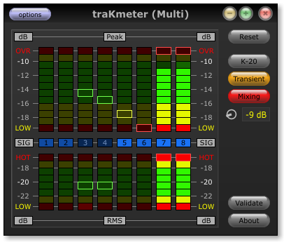 TrakMeter est un crête-mètre multi-pistes aux formats LV2, VST et autonome.