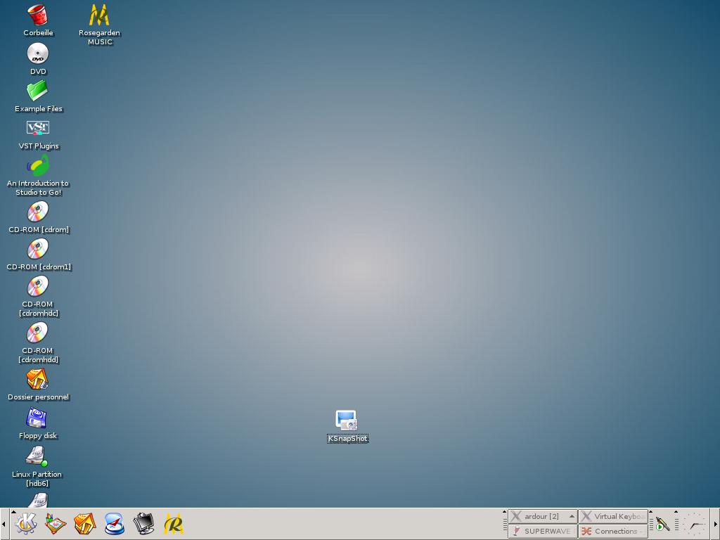 - ouverture de Ardour (1 piste stéréo suffit pour l'exemple) , Superwave P8 et VK étant toujours opérationnels