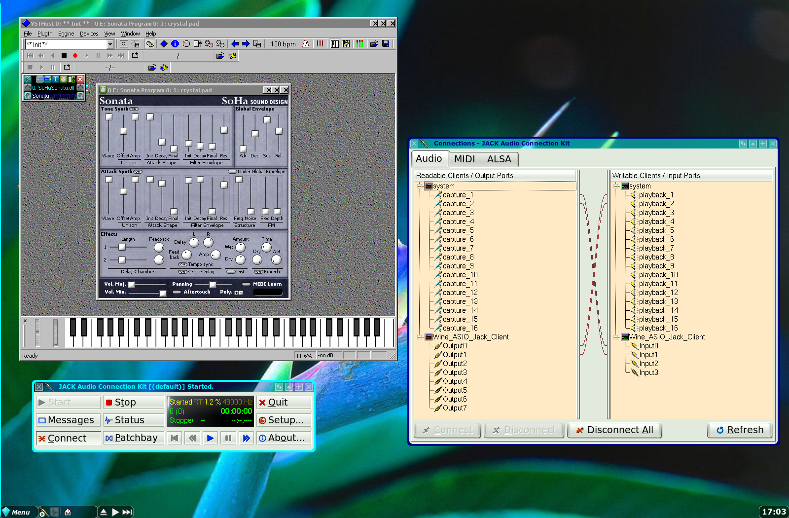 C'est la solution la plus simple pour utiliser des VST sous GNU/Linux car une fois que Wine est fonctionnel il suffit d'installer n'importe quel hôte présenté ci-dessous et de faire comme sous Windows.