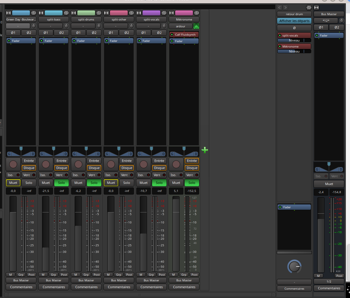 - Vous envoyez tout à gauche de la stéréo les pistes de métronome et de marqueurs sonores.