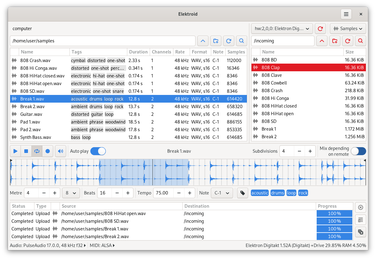 ) pour les machines Elektron mais pas que ! Aussi tous les échantillonneurs (=sampleurs en}) implémentés MIDI SDS.Un équivalent de l’appli "Transfer" d‘Elektron pour linux.