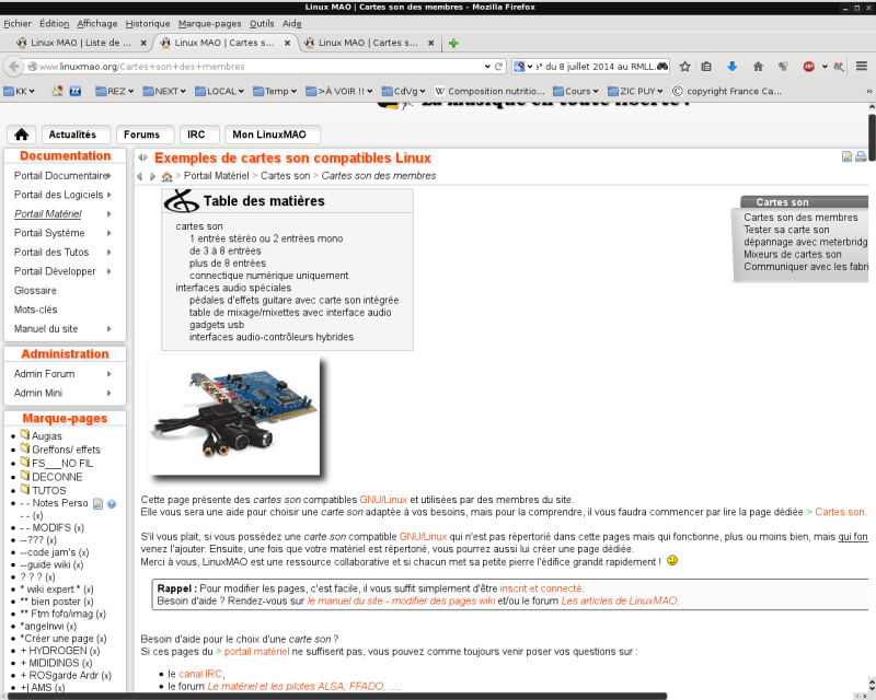 Le matériel et les pilotes ALSA, FFADO, ...