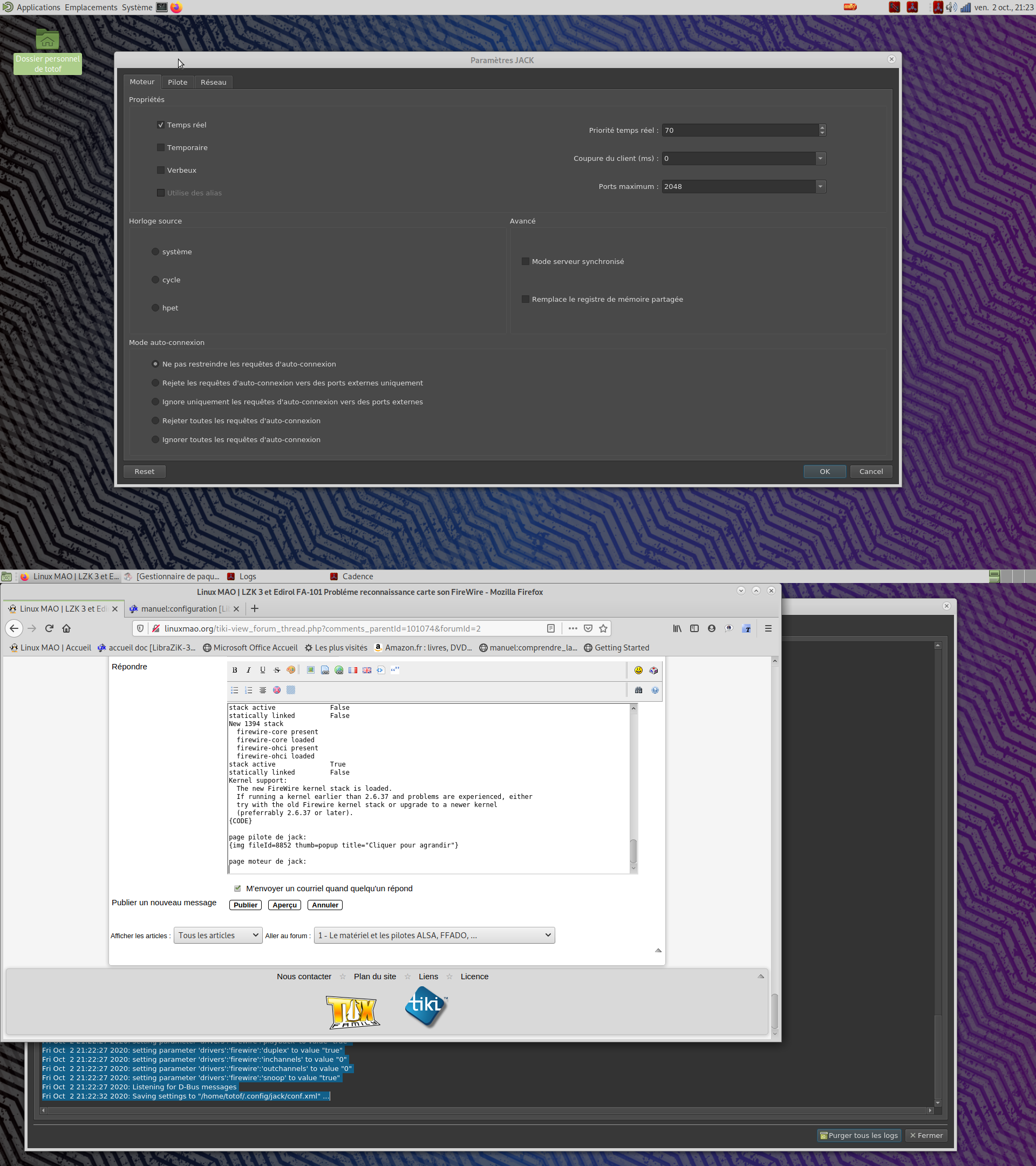 Par contre dans le mixeur ffado, celui-ci me reconnait bien la FA-101:
